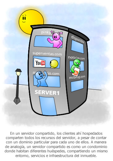 Un servicio de Hospedaje Web compartido, como el que usted quizá tenga contratado con Grupo Inter México, consiste en un Hospedaje Web donde usted comparte un mismo servidor con otros usuarios y clientes. Aunque cada uno de ellos cuente con un dominio propio, página Web y correos electrónicos, los recursos del servidor (hardware y software) son compartidos con otros clientes y usuarios.